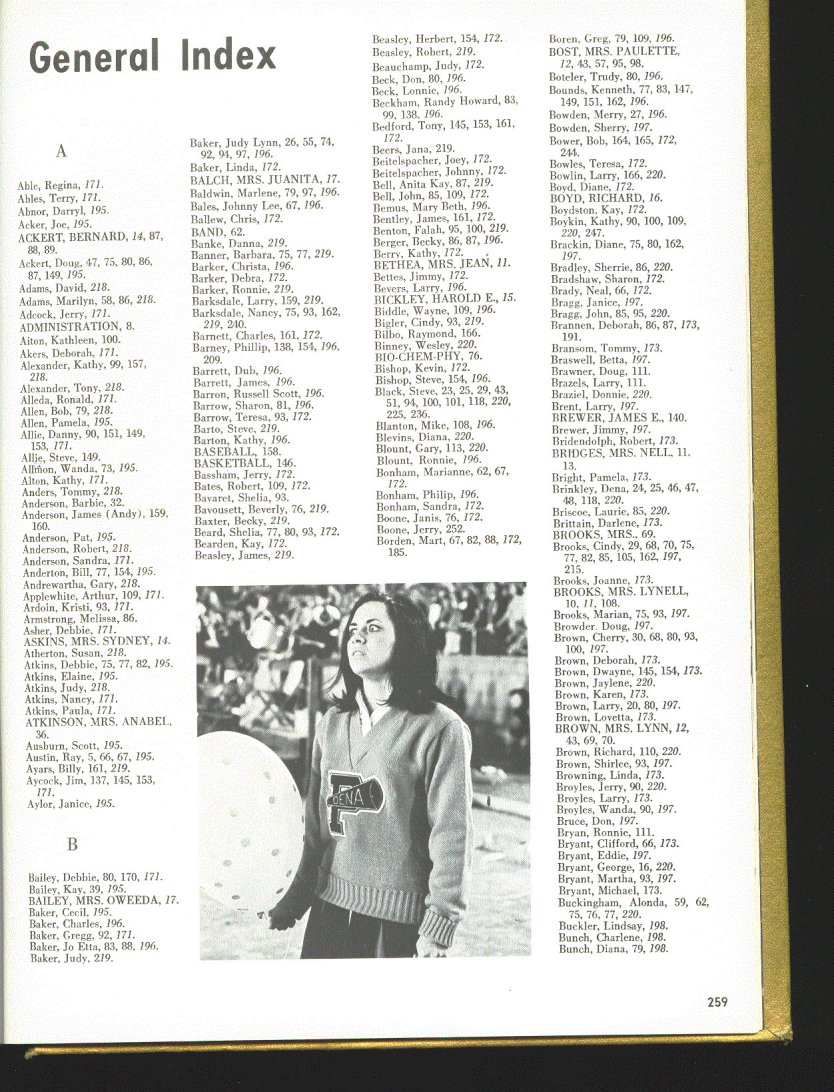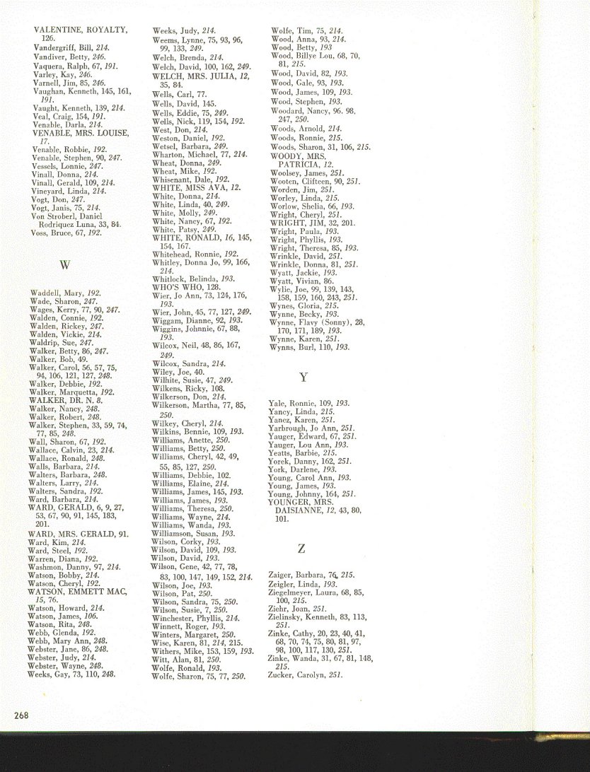 Photo Contributors: Marianne Stubbe McGinnis, Ronnie Miller, Vikki Pulido Scroggs, Marilyn Duncan, Sonny Tull, Robert Beasley, Kristy Libotte Keener, Rex McDaniel, David Tarrant, Jackie Thomason, Cathy Hardisty Roberts, Billy Ayars, Gloria Townsend Ayars, Gary Pillers, Donna Reid, Lloyd Gunn, Jerry Martin, Mike Nichols, Nancy Walker Kuhlman, Jerry Martin, Becky Purdy Deaton, Sherry Newman Mallory, Kenny Goolsby, Linda Morris